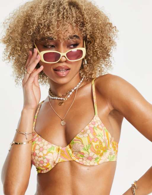Monki – BLommig bikiniöverdel med bygel - MULTI