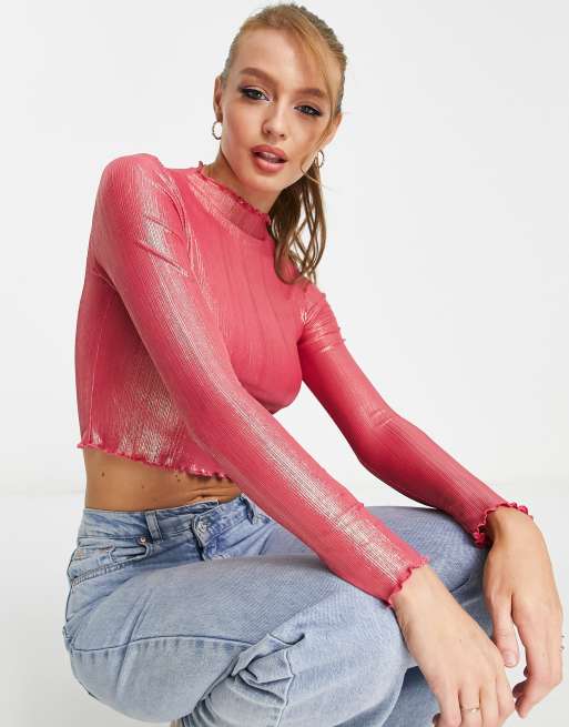 Monki – Flerfärgad glittrig topp med krinklad struktur och hög ringning