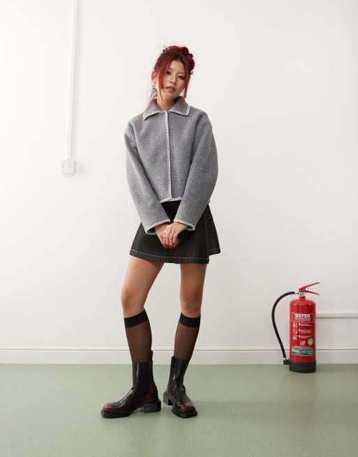 Monki – Gråmelerad jacka i kort design med kontrastsöm