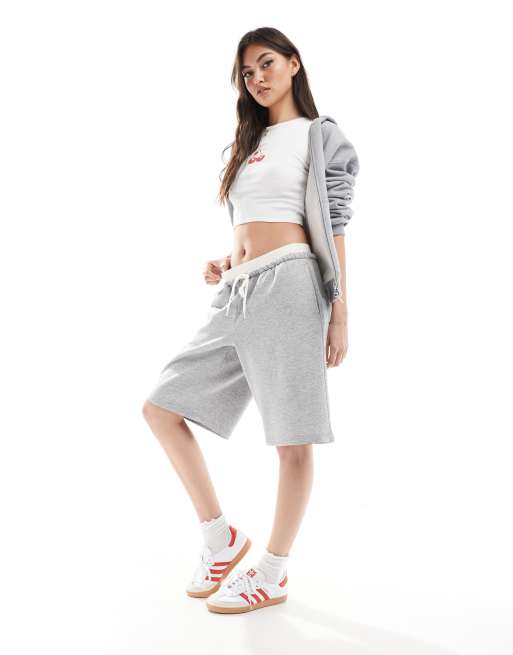 Monki – Gråmelerade, långa shorts i jersey med elastisk midja