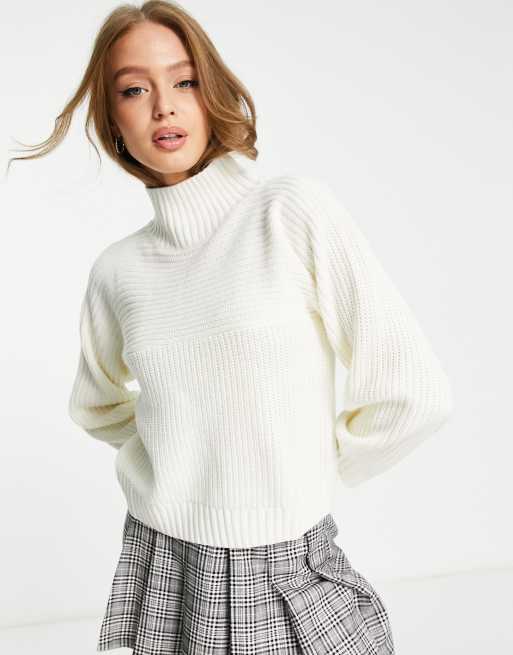 Monki – Libby – Naturvit, stickad tröja med hög krage