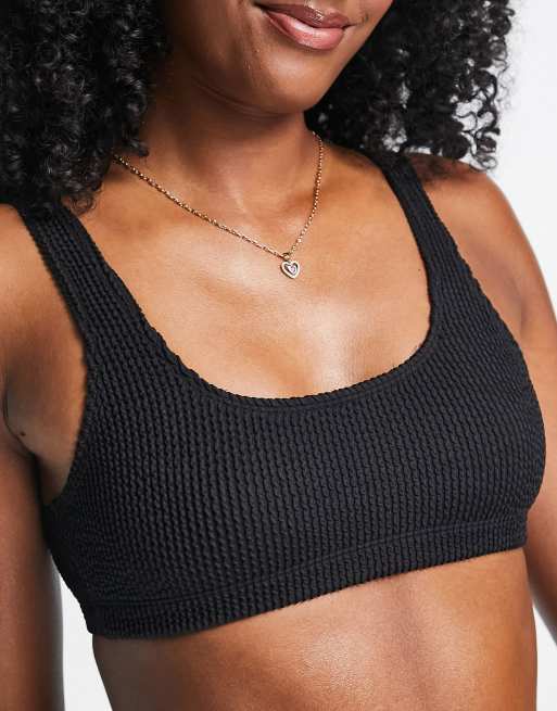 Monki – Ma-Lis – Svart ribbad bikiniöverdel i polyester och croppad design