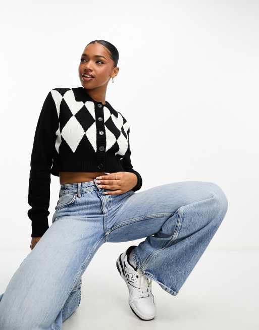 Monki – Monokrom, argylestickad kofta i kort design