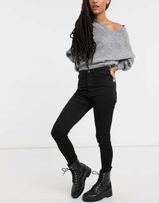 Monki – Oki – Svarta skinny jeans i bomull med hög midja - BLACK