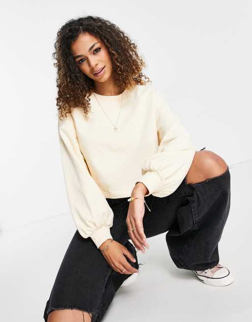 Monki – Olinda – Ljusgul sweatshirt i bomull med ballongärm - YELLOW - YELLOW