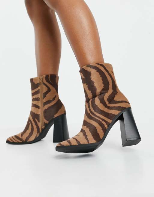 Monki – Robbie – Bruna zebramönstrade boots i läder - BLACK