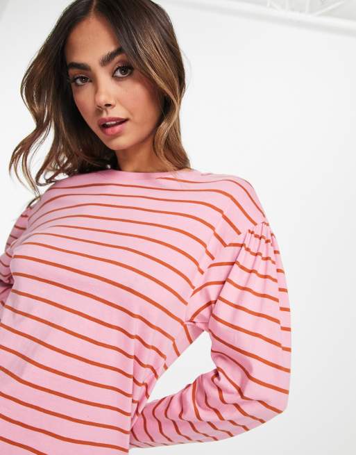 Monki – Rosa och blå, randig långärmad t-shirt