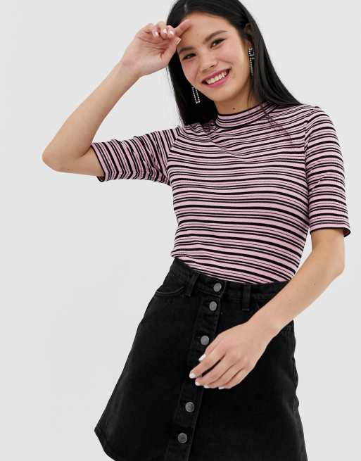 Monki – Rosarandig t-shirt med hög krage