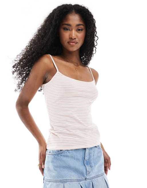 Monki – Rött och vitrandigt linne i krympt design med smala axelband