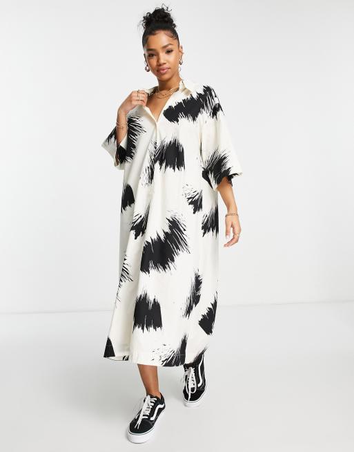Monki – Skjortklänning i midilängd med penseldragsmönster