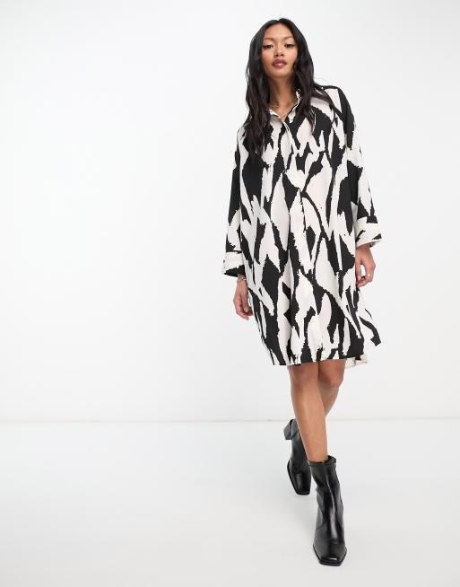 Monki – Svart och krämvit, mönstrad skjortklänning i minilängd