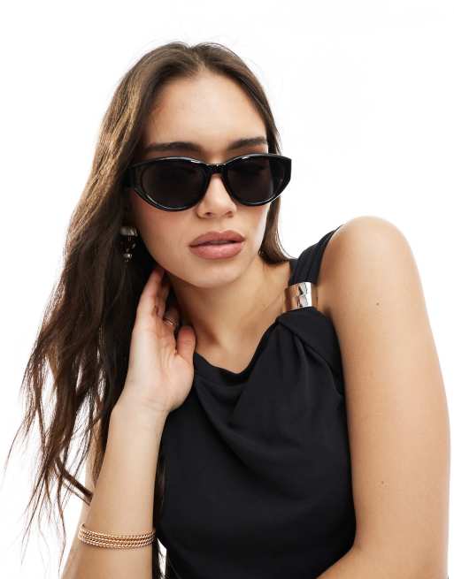 Monki – Svarta, ovala solglasögon i cateye-modell