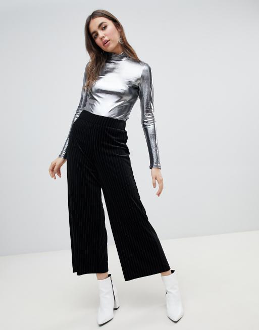 Monki – Svarta vida sammetsbyxor med kritstrecksränder