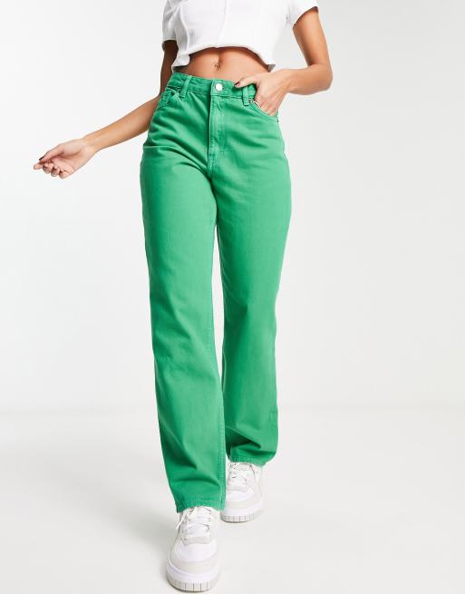 Monki – Taiki – Klargröna jeans med raka ben