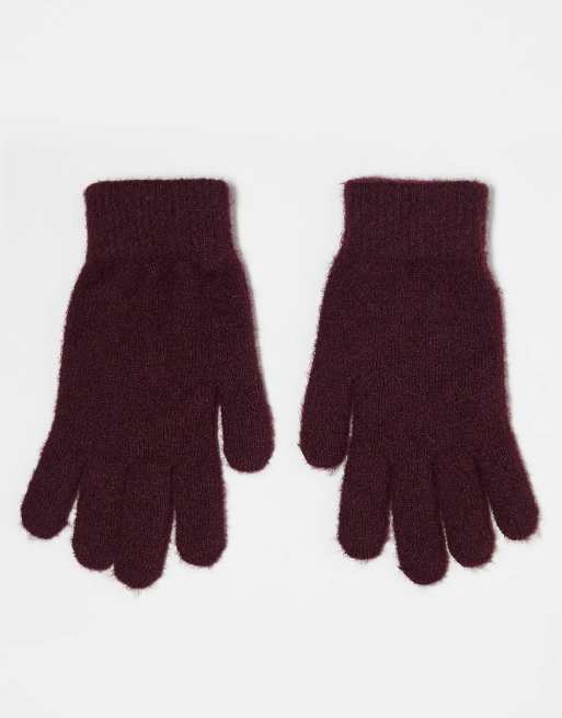 Monki – Vinröda, luddiga handskar