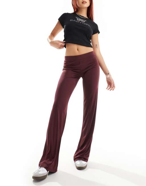 Monki – Vinröda, supermjuka byxor i jersey med baggy-stil, raka ben och låg midja