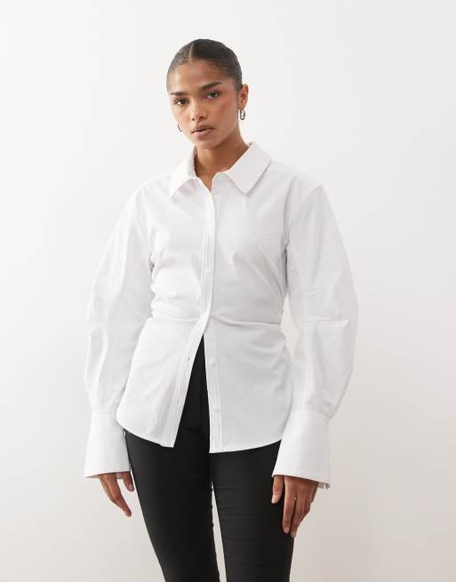 Monki – Vit skjorta med indragen midja