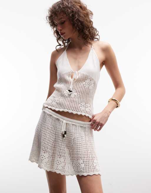 Monki – Vitt, virkat set med pärlor och knytning