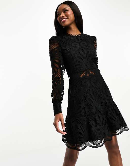 Morgan – Premium – Svart miniklänning med spetsapplikation