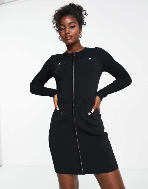 Morgan – Svart, stickad bodycon-klänning med dragkedja
