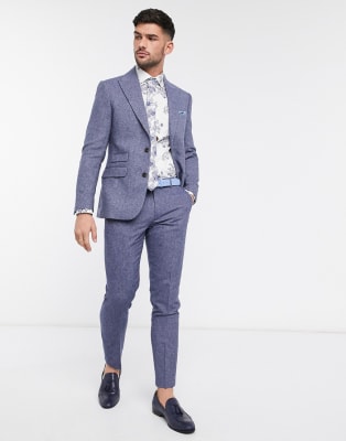 Moss London – Blå fiskbensmönstrad kostym i smal passform