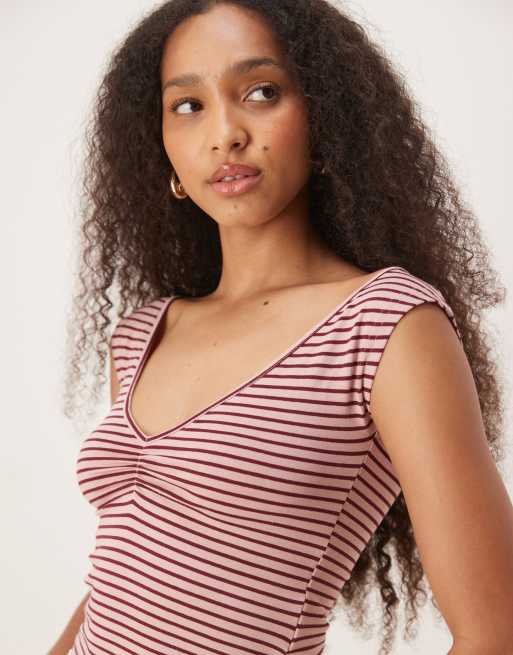 Motel – Danisha – Rosa, randig topp med v-ringning