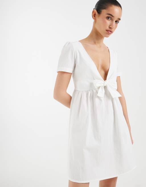 Motel – Lyris – Vit miniklänning med korta ärmar och knut