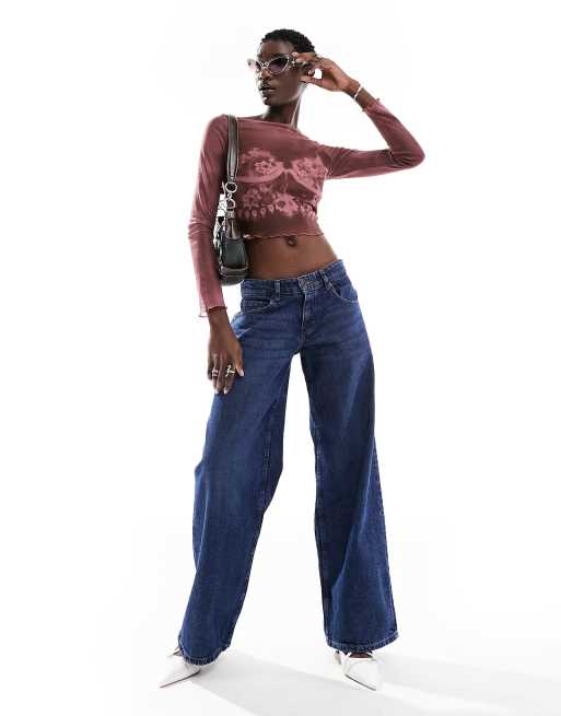 Motel – Mellanblå, rymliga, extra vida jeans med låg midja