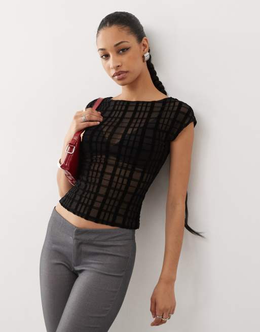 Motel – Nova – Svart, rutig, figurnära t-shirt