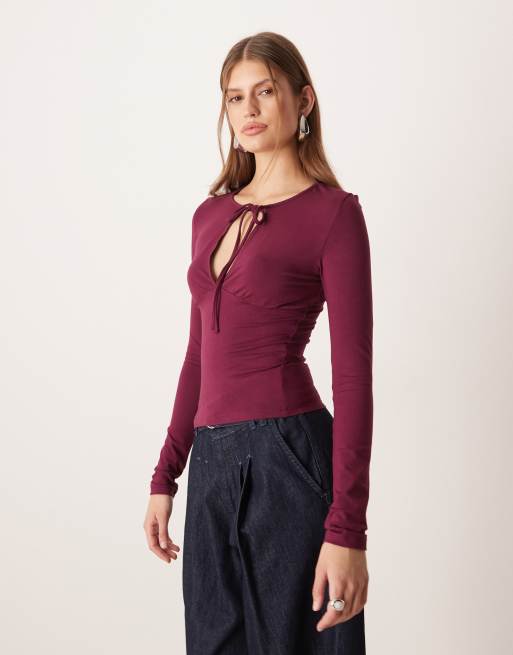 Motel – Yubin – Plommonfärgad långärmad topp med nyckelhålsöppning