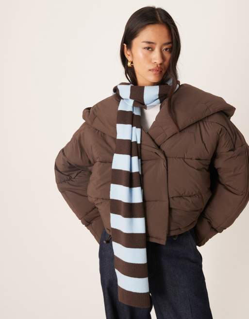 My Accessories – Blå och brunrandig, stickad halsduk