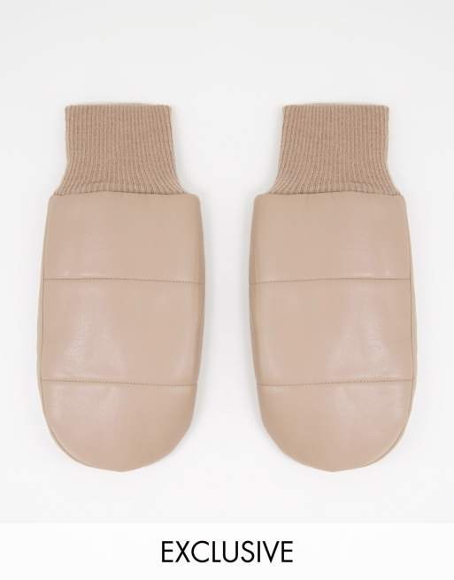 My Accessories London – Beigefärgade, vadderade vantar i läderimitation, endast hos ASOS
