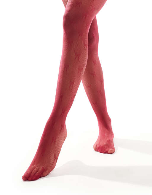 My Accessories – Vinröda tights med rosettmönster