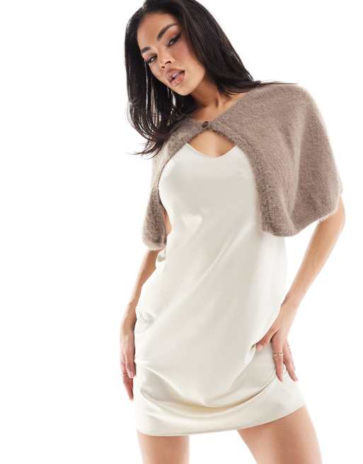 NA-KD – Beige, fluffigt stickad cape med knäppning
