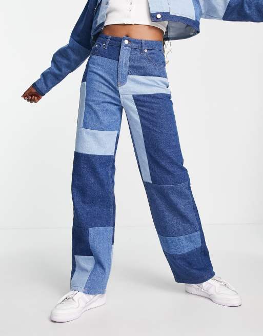 NA-KD – Blå, panelsydda jeans med raka ben