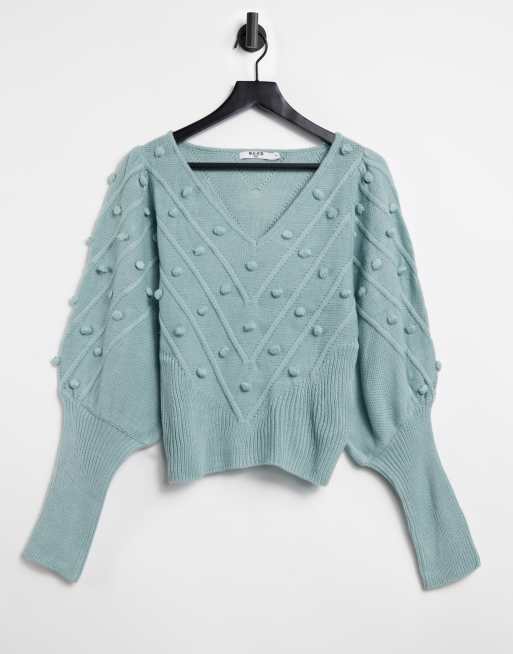 NA-KD – Grön, stickad tröja med tofsar och v-ringning