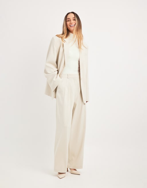 NA-KD – Sandfärgad figursydd kostym med kavaj och byxor