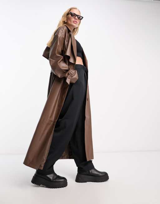 NA-KD x Stephsa – Brun trenchcoat i läderimitation