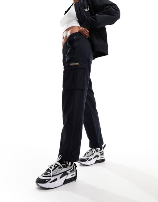 Napapijri – Svarta vävda cargobyxor med hög midja och skärp