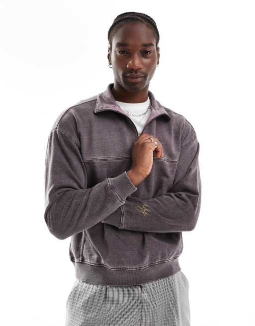 Native Youth – Brun sweatshirt med kvartslång dragekdja och kraftigt, tvättad finish