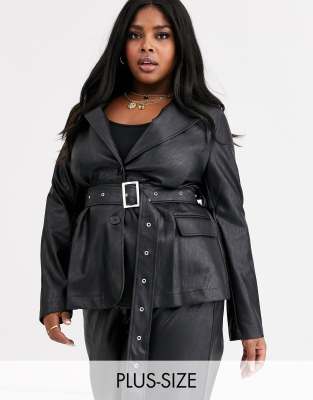 Neon Rose Plus – Kavaj i läderimitation med skärp