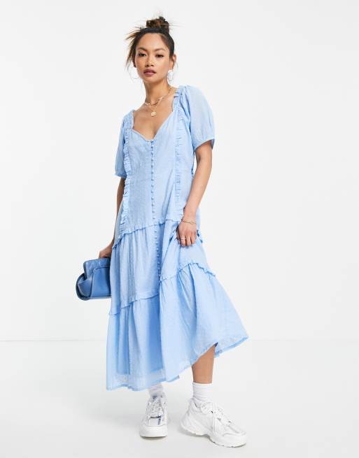 Neon Rose – Milkmaid-klänning i midilängd med volangkant