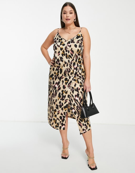 Never Fully Dressed Plus – Leopardmönstrat set med linne och omlottkjol i midilängd