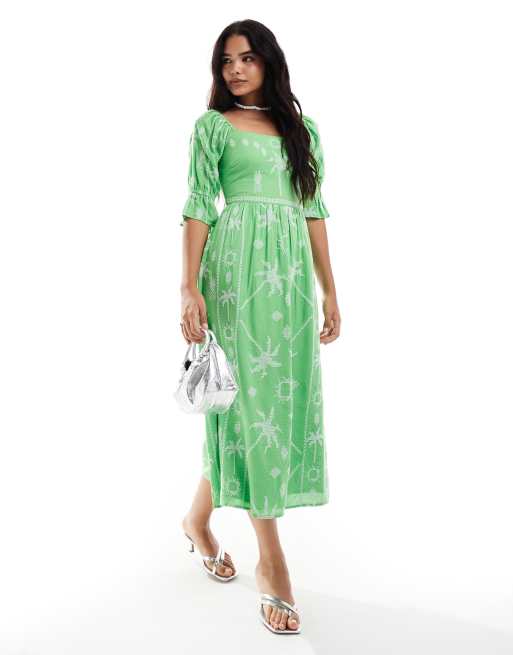 Never Fully Dressed – Belle – Grön midaxiklänning med broderi