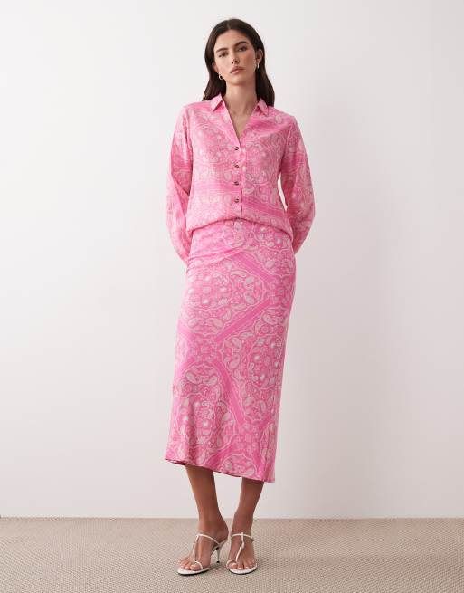 Never Fully Dressed – Dorris – Rosa, paisleymönstrad maxikjol i satin, del av set