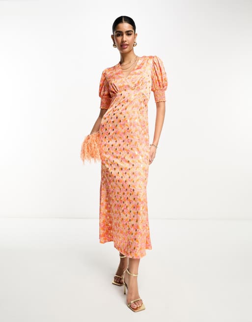 Never Fully Dressed – Ombréfärgad och snäckskalsmönstrad midaxiklänning med puffärmar