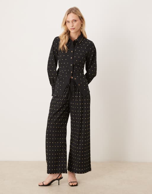Never Fully Dressed Petite – Svarta, vida byxor i bomull med strass