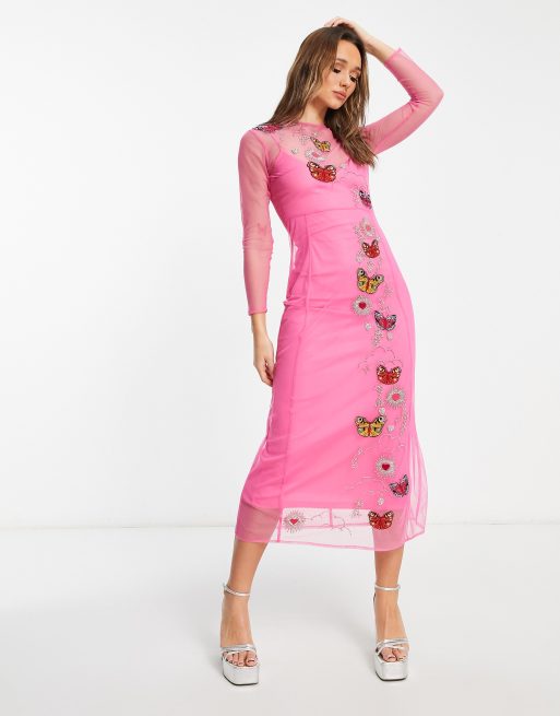 Never Fully Dressed – Rosa maxiklänning utsmyckad med fjärilar