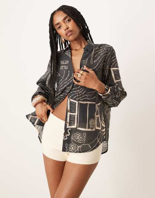 Never Fully Dressed – Svart, palmmönstrad skjorta i oversize, del av set