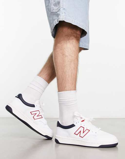 New Balance – 480 – Vita sneakers med marinblå och röda detaljer